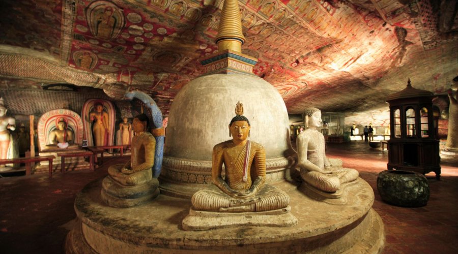 Dambulla Cave temple also known as the Golden Temple of Dambulla. There are five caves (Deva Raja Viharaya, Maha Raja Viharaya, Maha Alut Viharaya, Paschima Viharaya) in the Dambulla Temple and 157 statues of the Lord Buddha. Most of the paintings on the ceiling and walls emphasize the artistic talents of ancient days. Dambulla Rock Cave Temple can be reached by coming from Kandy (68km) along A9 road which runs up through Dambulla and Anuradhapura, or direct from Colombo. Located at an elevation of 1118 feet from the sea level, the Dambulugala raises as a massive rock from the surrounding plains of Dambulla. It is home to the World’s most acclaimed Cave complex of magnificent Buddha Images and Rock Paintings of vivid colours and shapes constructed and painted from around the 2nd Century BC (Anuradhapura era) and continued up to the Kandyan era of the 18th Century, thus forming an unbroken line of history and painting styles of Sri Lanka through 2500 years. The statues and art found within the cave truly highlight the artistic abilities of those living in the past. It is well persevered and a walk through the caves will prove to be both insightful and a very memorable experience.